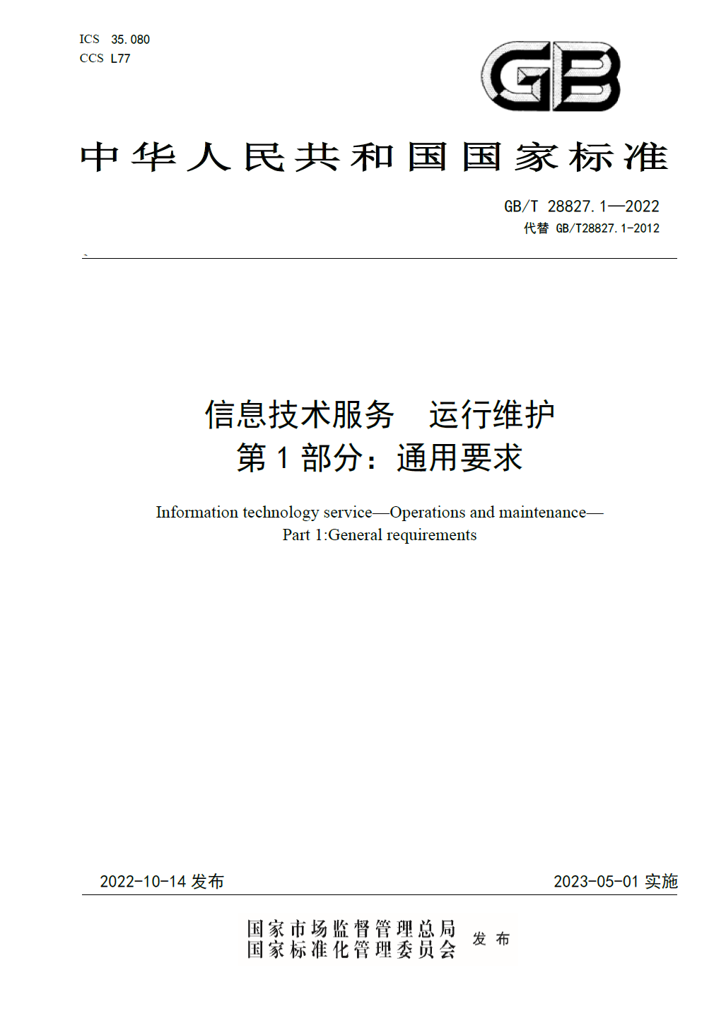《信息技(jì)術(shù)服務 運行(xíng)維護 第1部分(fēn) 通(tōng)用(yòng)要(yào)求》 國(guó)家(jiā)标準正式發布